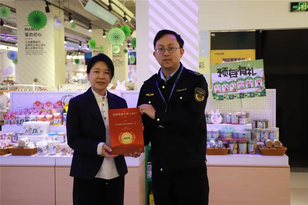向獲得“名特優(yōu)新”認(rèn)定的個(gè)體工商戶們頒發(fā)了“名特優(yōu)新”個(gè)體工商戶認(rèn)定標(biāo)識(shí)