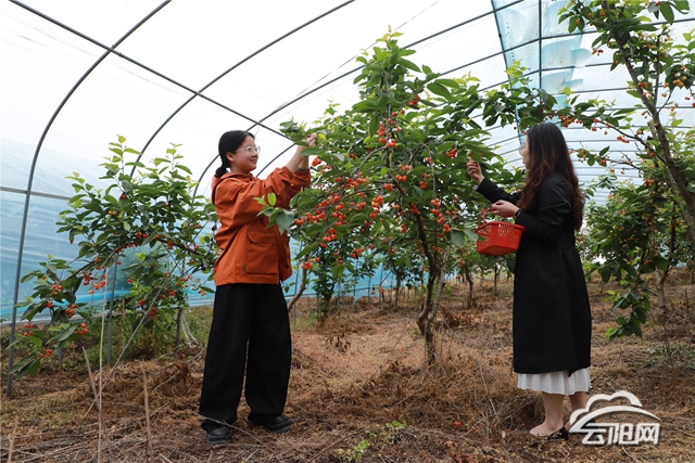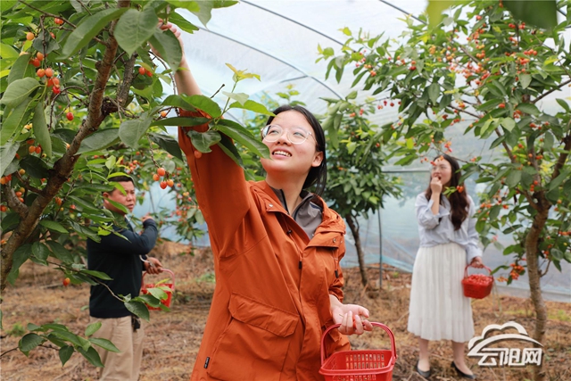 云陽網(wǎng)訊(記者 陳慧)四月春光正好,近日,寶坪鎮(zhèn)地坪村櫻桃基地迎來豐收季。50畝紅妃櫻桃樹碩果累累,晶瑩剔透的果實綴滿枝頭,吸引眾多游客慕名而來。