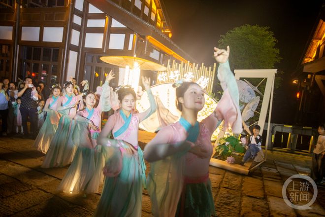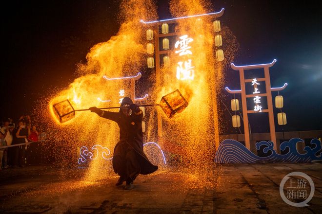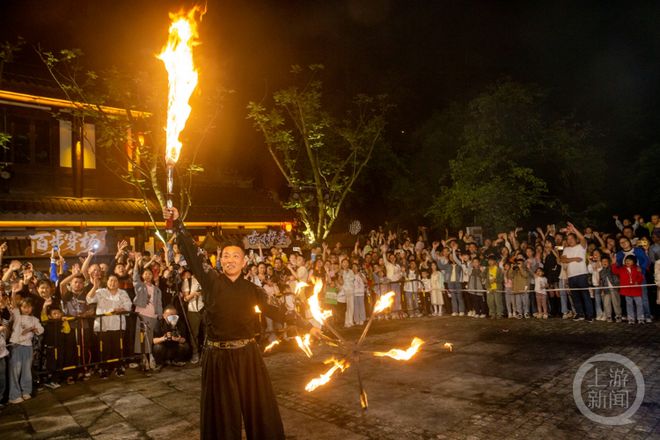 夜幕降臨時(shí),非遺火壺表演的烈焰劃破夜空,川劇變臉的驚鴻一瞬,與年輕人自發(fā)的舞蹈快閃形成奇妙共振。