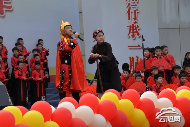 文藝匯演環(huán)節(jié)高潮迭起,21個精選節(jié)目各具特色。鳳鳴鎮(zhèn)中心幼兒園的舞蹈《我們都會過馬路》、親子時裝秀,展現(xiàn)出小朋友勇敢自信的模樣和家園共育的成果;里市小學(xué)的《手機(jī)綜合癥》、院莊小學(xué)的《童年不同樣》等情景劇,聚焦生活與成長話題,引發(fā)觀眾共鳴;鳳橋小學(xué)的舞蹈《紅星閃閃》再現(xiàn)革命精神;鳳鳴小學(xué)的朗誦《滿江紅》氣勢磅礴,傳遞出深厚的愛國情懷。