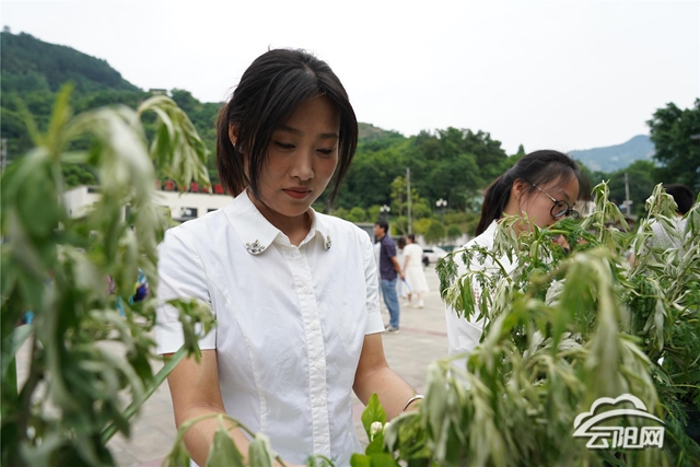 除了精彩的表演節(jié)目,活動(dòng)現(xiàn)場(chǎng)還設(shè)置了“許愿粽葉”和“艾葉插瓶”兩個(gè)互動(dòng)環(huán)節(jié)。參與者們?cè)隰杖~上寫下自己的姓名、祝福語(yǔ)或心愿,并將其懸掛于麻繩之上,寄托著對(duì)美好生活的向往。同時(shí),機(jī)關(guān)女職工們親手挑選艾草和菖蒲,搭配出獨(dú)具匠心的插花作品,為活動(dòng)增添了更多的節(jié)日氛圍。