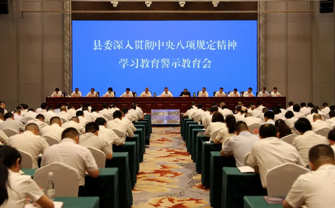 市委學(xué)習(xí)教育第二督導(dǎo)組組長謝金鋒、副組長殷祥波到會指導(dǎo),縣委副書記、縣長李茂濤,縣人大常委會主任楊志奇,縣委副書記甘露,縣委常委,其他縣級領(lǐng)導(dǎo)出席。與會人員觀看了警示教育片。