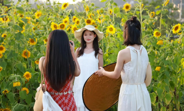 “這里的向日葵數(shù)量多,景色特別美?!?/p>