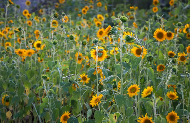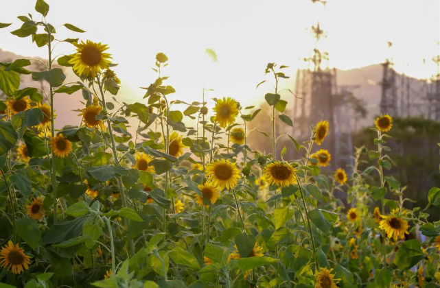 在夕陽的映照下,向日葵迎風(fēng)搖曳
