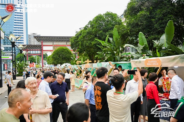 啟動(dòng)儀式現(xiàn)場,氣氛熱烈非凡。武隆《印象武隆》選段《川江號(hào)子》、酉陽《木葉情歌》等豐富多元的節(jié)目為觀眾帶來了一場視聽盛宴。現(xiàn)場還設(shè)置了消費(fèi)展區(qū),供市民游客沉浸式體驗(yàn)“逛、購、品、娛”的樂趣。