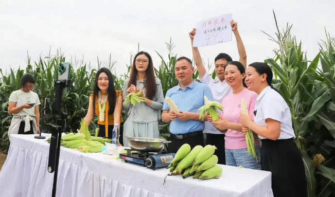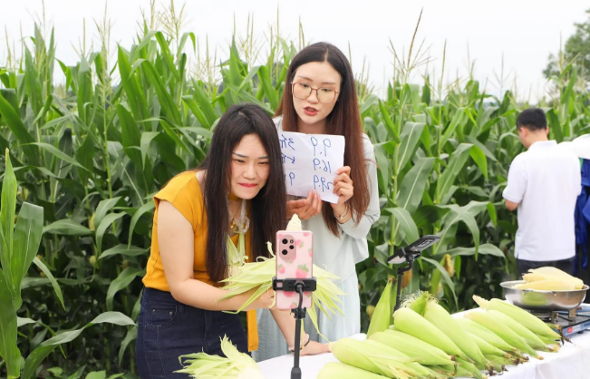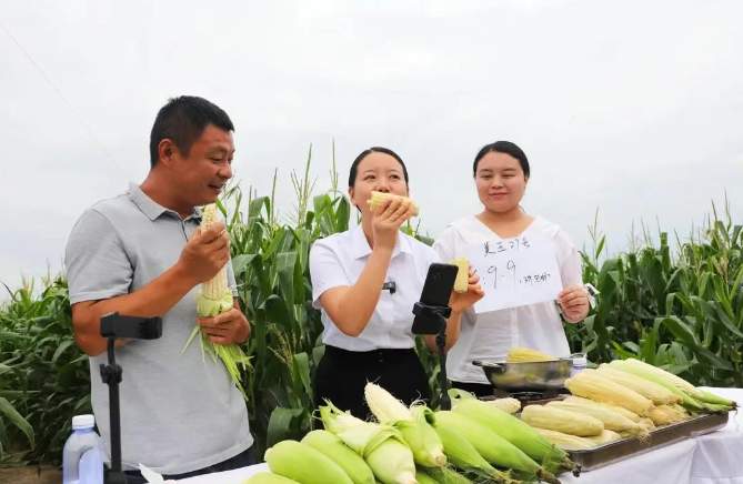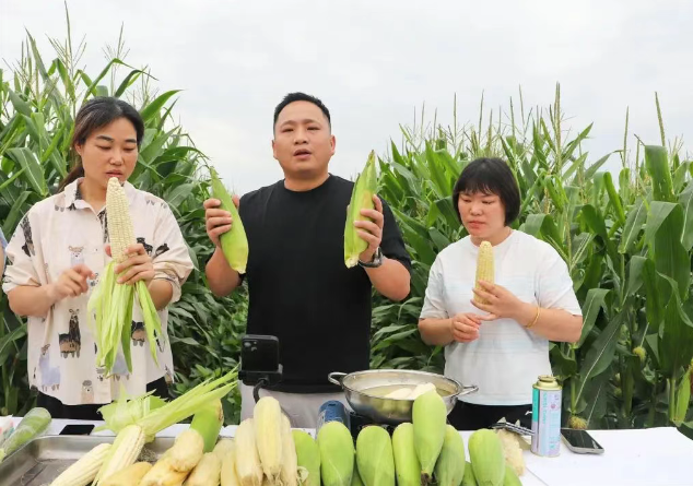 對著手機(jī)屏幕熱情吆喝她的“直播間”就搭建在玉米壟旁