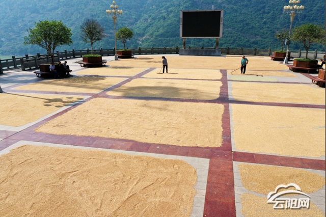 云陽網(wǎng)訊(通訊員 方劍)風(fēng)吹麥浪遍地黃,顆粒歸倉豐收忙。近日,龍洞鎮(zhèn)2000畝小麥喜獲豐收,走進龍洞鎮(zhèn)場鎮(zhèn),群眾一大早將收獲的糧食集中運到政府廣場進行攤平、晾曬,成熟的小麥顆粒飽滿、粒粒金黃,呈現(xiàn)出一派豐收圖景。