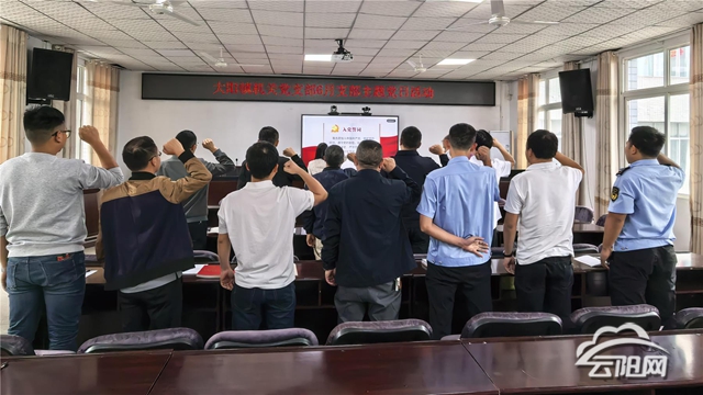“我志愿加入中國(guó)共產(chǎn)黨……”在大陽(yáng)鎮(zhèn)機(jī)關(guān)黨支部6月集體政治生日上,17只緊握的拳頭舉起如林,誓言如磐石墜地,在會(huì)議室激起久久回響。