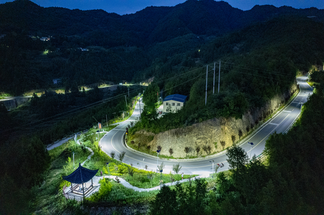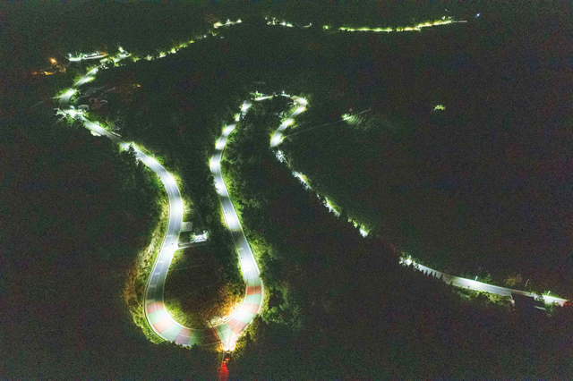 夜幕降臨,驅(qū)車(chē)翻越洞鹿鄉(xiāng)盤(pán)山公路,行至草坪梁,一條長(zhǎng)達(dá)10余公里的璀璨燈帶從山頂蜿蜒至山腳,成為山間一道亮麗的風(fēng)景線。這條由慈善路燈構(gòu)成的“光明紐帶”,不僅照亮了村民的歸家路,更串聯(lián)起沿線的產(chǎn)業(yè)發(fā)展:山那邊的戶(hù)外越野露營(yíng)基地、666臘肉加工廠、大棚蔬菜基地、青杉水庫(kù)、仙鹿洞水廠以及五彩田園景區(qū),都在燈光映襯下煥發(fā)著夜間活力。