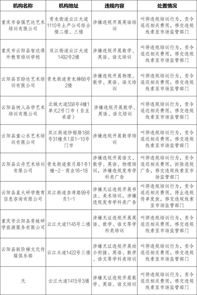 云陽縣校外培訓(xùn)機(jī)構(gòu)黑名單