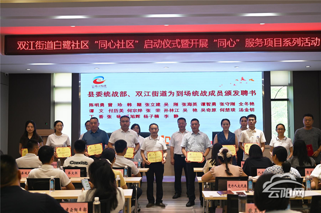 啟動儀式上,白鷺社區(qū)負責人詳細介紹了社區(qū)概況,縣委統(tǒng)戰(zhàn)部相關負責人對“同心社區(qū)”建設明確了具體要求,白鷺社區(qū)黨支部書記現(xiàn)場公布了轄區(qū)統(tǒng)戰(zhàn)成員融入網(wǎng)格人員名單,并為統(tǒng)戰(zhàn)成員頒發(fā)“同心服務隊隊員”聘書,縣委統(tǒng)戰(zhàn)部為白鷺社區(qū)“同心社區(qū)”授牌。
