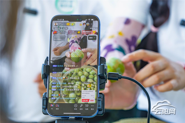 龍角鎮(zhèn)木甫村海拔適中,日照充足,產出的青脆李皮薄肉厚、酸甜爽脆。今年,當?shù)匾?guī)?;N植青脆李約600畝,年產量預計可達5萬斤左右。為幫助農戶拓寬銷售渠道,龍角鎮(zhèn)政府聯(lián)合“云陽村播助農團”直播團隊開展電商銷售,組織本當?shù)馗刹可钊胩镩g地頭,化身主播,把手機變?yōu)椤靶罗r具”,讓新鮮采摘的李子通過互聯(lián)網賣到全國各地。