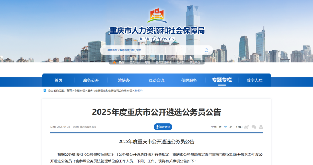 《2025年度重慶市公開(kāi)遴選公務(wù)員公告》