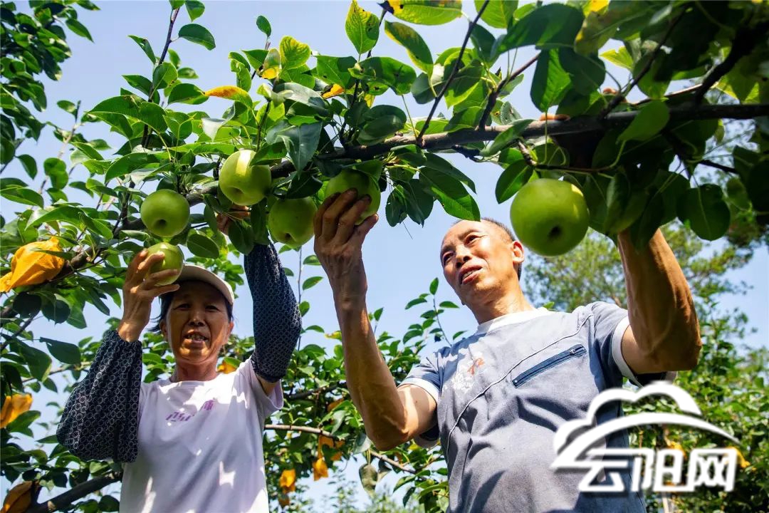 郁郁蔥蔥的枝葉間,碩大的雪梨掛滿枝頭