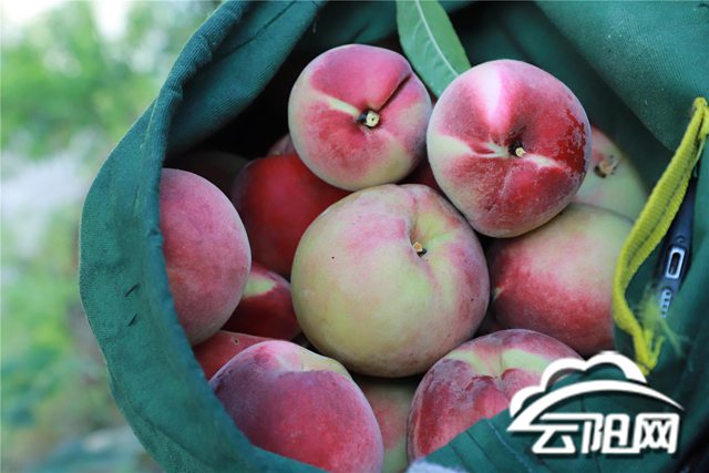 走進(jìn)渠富桃園,沉甸甸的秋彤桃壓彎了枝頭,果皮透著誘人