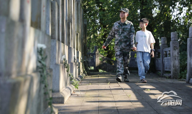 清晨的陽光穿過松柏,灑在農(nóng)壩鎮(zhèn)烈士陵園的墓碑上。34歲的張成丙手持抹布,仔細(xì)擦拭著碑上的名字,動作輕柔得像在喚醒沉睡的英雄。隨后,又帶著兒子在墓碑前輕輕地放下手里的菊花,面對烈士碑,敬了一個標(biāo)準(zhǔn)的軍禮,看著爸爸的舉動,兒子張任濤的眼睛里也濕潤了。從2010年退伍回鄉(xiāng)算起,這樣的場景,張成丙已經(jīng)堅(jiān)持了15年。