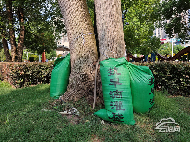 為避免高強(qiáng)度陽光對(duì)不耐高溫植物造成的損害,縣興云集團(tuán)還在月光草坪、迎賓大道、兒童公園等地鋪設(shè)了約10000平方米遮陽網(wǎng),減少陽光灼傷與水分蒸發(fā),同時(shí)為各路段喬木掛設(shè)滴灌袋2500余個(gè),打孔灌水12000余株,確保苗木存活。