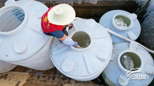 工作人員將村中的蓄水池全部注滿