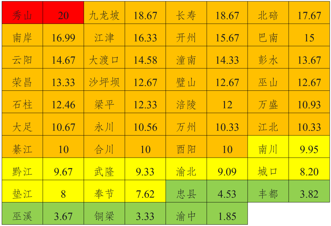 各區(qū)縣布雷圖指數(shù)請通過下面表格查詢(從左到右,由高到低排序):