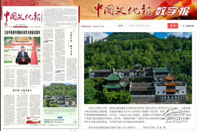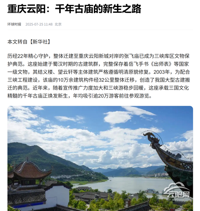 分別關(guān)注報(bào)道了云陽張飛廟景區(qū)