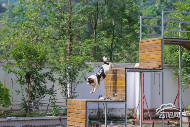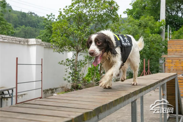 基地面積不算大,主要進行翻越三級跳臺、獨木橋行走等基礎(chǔ)障礙訓練。“二奎,上去!”靳忠松開牽引繩,這只史賓格犬幾步輕盈躍上三級跳臺,動作行云流水,隨即轉(zhuǎn)向一旁的獨木橋,毫不猶豫,穩(wěn)穩(wěn)跑過,如履平地。