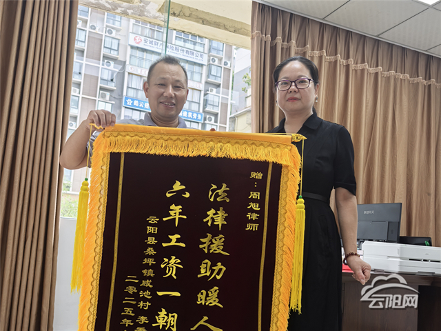 云陽網(wǎng)訊 (記者 李歆宇)近日,縣社會治安綜合治理中心內(nèi),氣氛熱烈而溫馨。桑坪鎮(zhèn)村民李秀瓊的丈夫捧著一面錦旗,專程而來。紅底金字錦旗上,“法律援助暖人心 六年工資一朝清”的字樣格外醒目,他將這份沉甸甸的感謝,鄭重交到縣司法局派駐中心的援助律師周旭手中——為的是那筆拖欠六年、終于追回的勞動報酬。