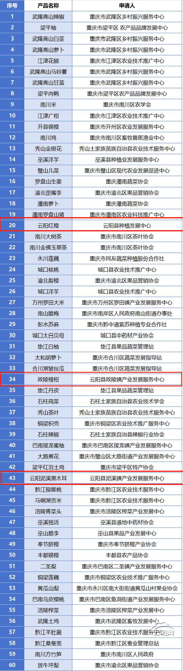重慶60個(gè)農(nóng)產(chǎn)品地理標(biāo)志