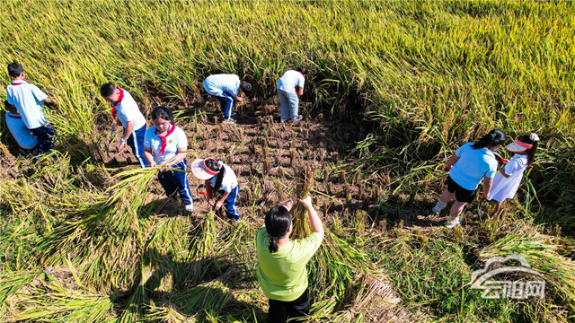 當(dāng)天,在云陽(yáng)縣路陽(yáng)小學(xué)的稻田里,一場(chǎng)別開生面的勞動(dòng)課正在進(jìn)行。教師姜赤云手持鐮刀,一邊示范一邊講解:“虎口向下捏住稻稈,右手鐮刀來(lái)回割……”學(xué)生們彎腰俯身,一手握稻,一手收割,動(dòng)作雖顯生疏,卻格外認(rèn)真。學(xué)生譚蕓熙說(shuō):“老師教我們正確收割方式,稻穗不能掉在地上,避免浪費(fèi)?!睂W(xué)生蔣智宇在勞動(dòng)后感慨:“今天我才真正體會(huì)到‘粒粒皆辛苦’的含義?!?/p>
