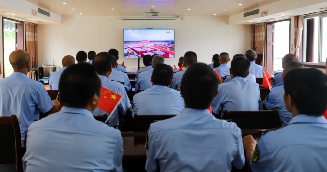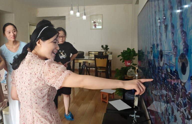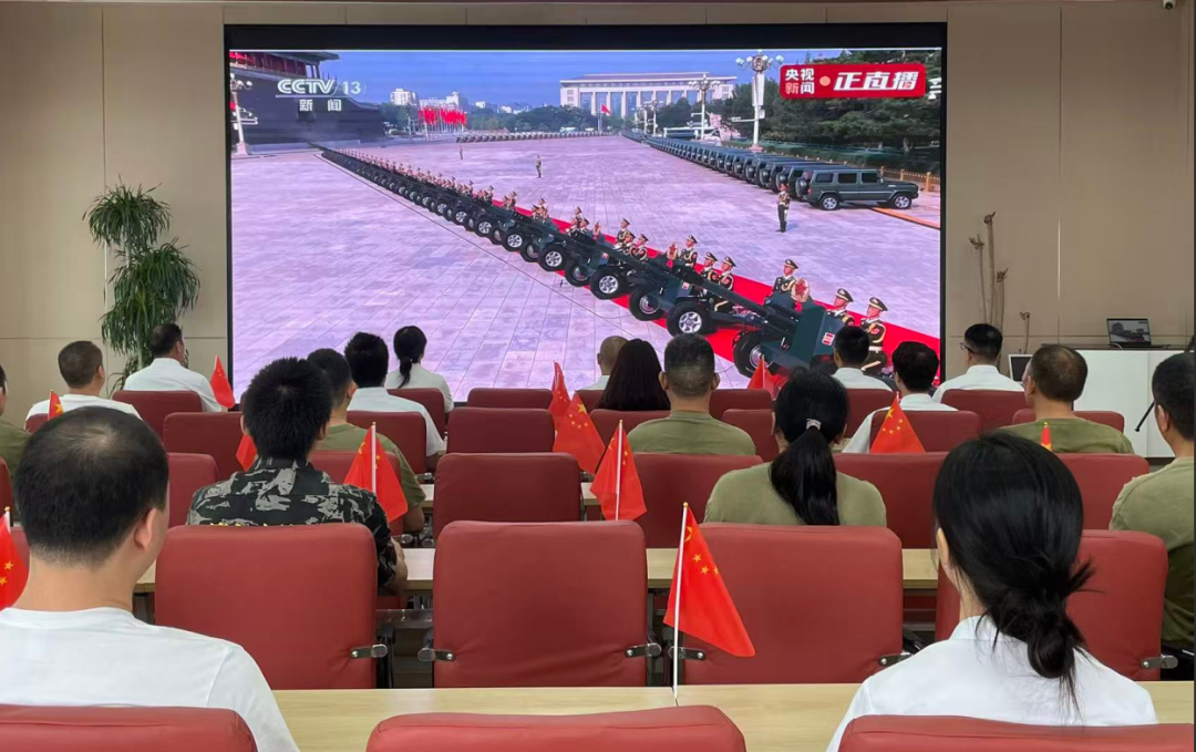 青龍街道現(xiàn)役軍人朱文瀚家屬收看閱兵式