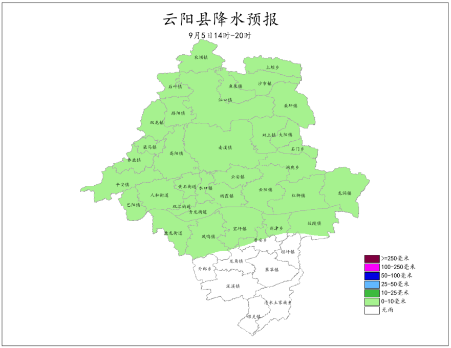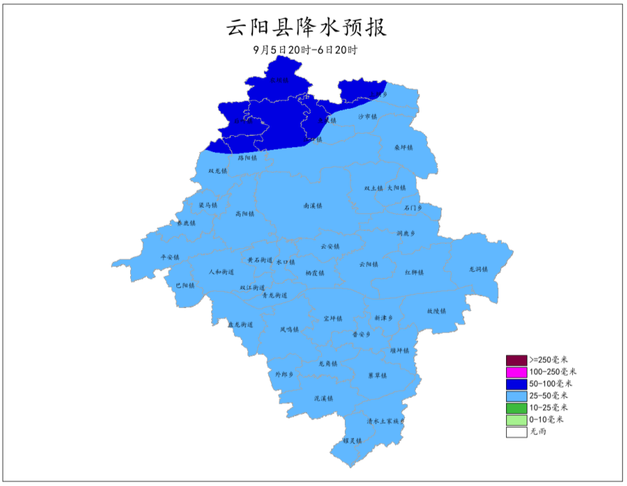 9月5日20時-6日20時云陽縣降水預(yù)報圖