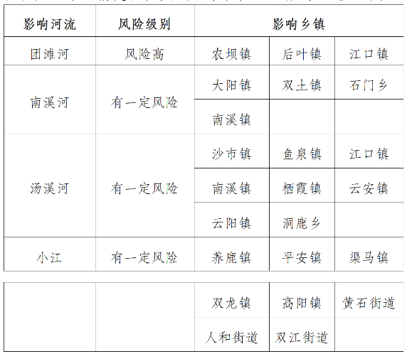 有一定漲水風(fēng)險的流域為南溪河、湯溪河、小江