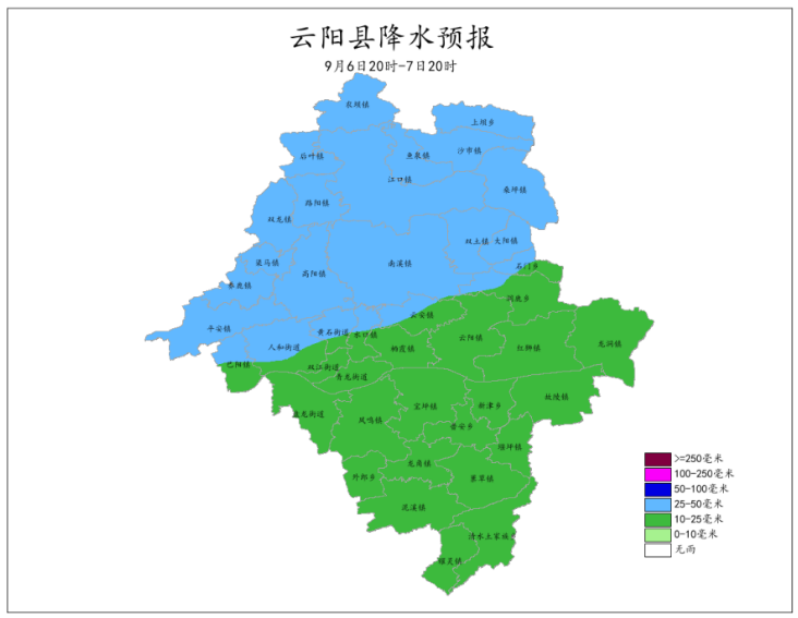 9月6日20時-7日20時云陽縣降水預(yù)報圖