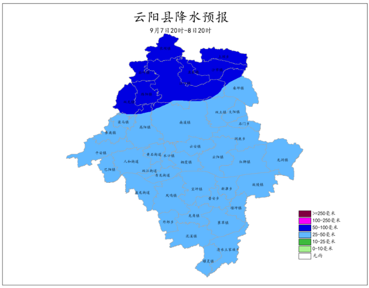 9月7日20時-8日20時云陽縣降水預(yù)報圖