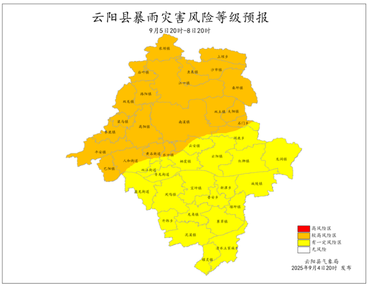 9月5日20時-8日20時云陽縣暴雨災(zāi)害風(fēng)險等級預(yù)報圖