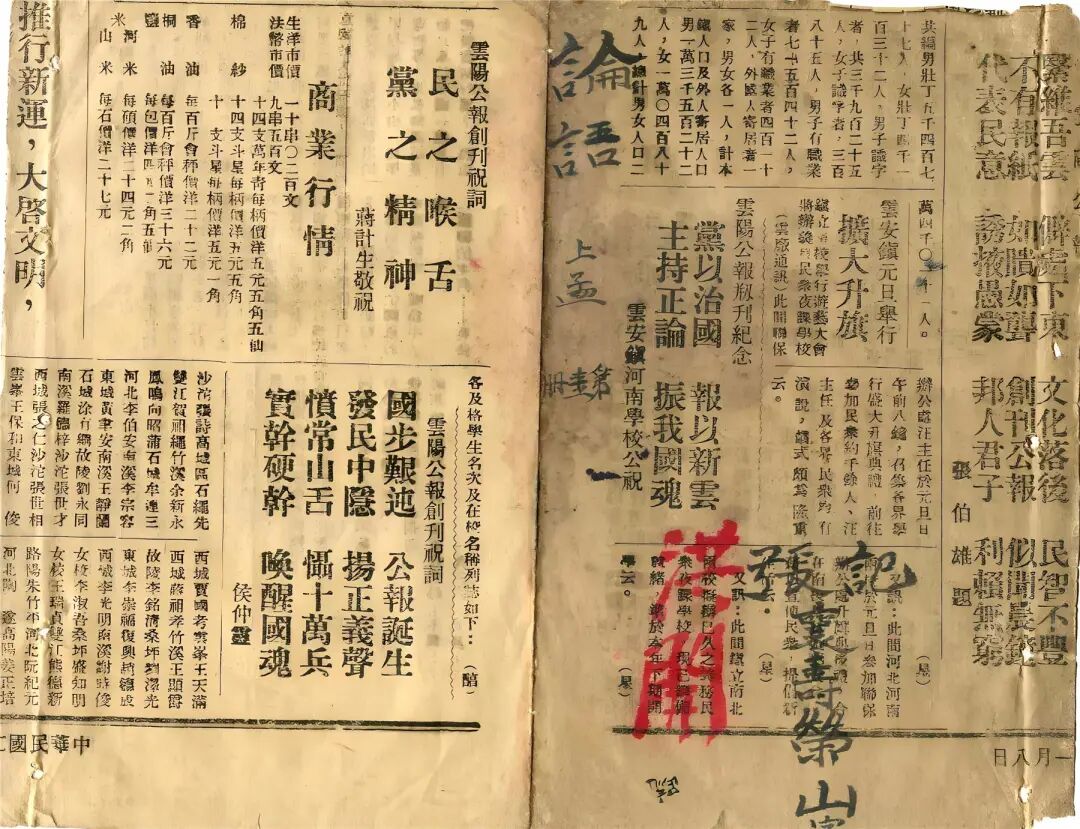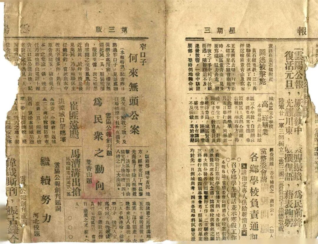 在風(fēng)雨如晦的年代,共產(chǎn)黨員編輯的《云陽公報》如一盞明燈,以“黨的立場,群眾的報紙”為宗旨,成為凝聚抗日共識、團結(jié)抗日力量的精神紐帶。如《云陽公報》創(chuàng)刊祝詞中“國步艱迍,公報誕生,發(fā)民中隱,揚正義聲,憤常山舌,懾十萬兵,實干硬干,喚醒國魂”“主持正論,振我國魂”“發(fā)聾振聵,為民先鋒”,無不為抗日救國發(fā)出振聾發(fā)聵的吶喊。