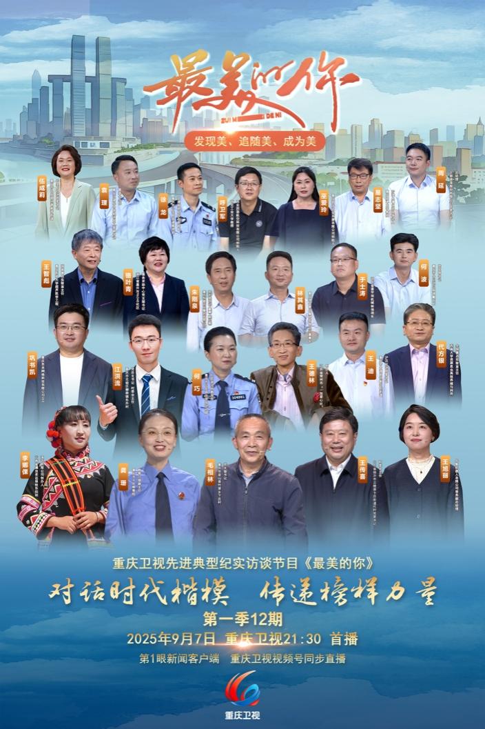 2025年9月7日21:30,大型先進(jìn)典型紀(jì)實訪談節(jié)目《最美的你》在重慶衛(wèi)視首播。