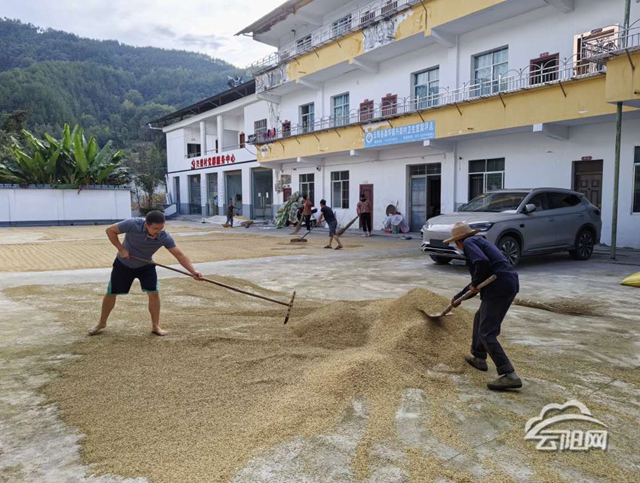 云陽網(wǎng)訊(通訊員 宿艷娜)9月17日,桑坪鎮(zhèn)的天空驟然陰沉,一場大雨即將來臨。此時,興梨村委會院子里正晾曬著附近農(nóng)戶的稻谷,農(nóng)戶見狀急忙動手收拾,可僅憑他們幾人,速度遠(yuǎn)遠(yuǎn)趕不上天氣變化的節(jié)奏,眼看稻谷就要被雨水淋濕,大家都急得團(tuán)團(tuán)轉(zhuǎn)。
