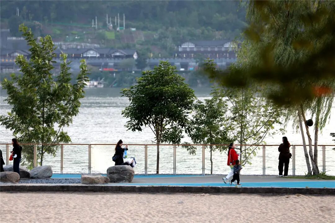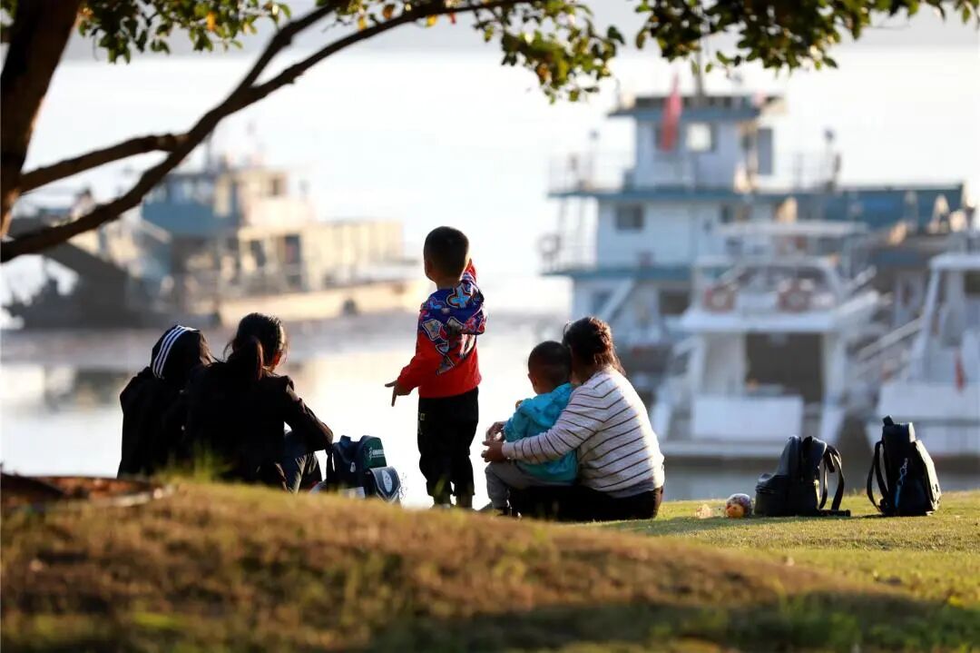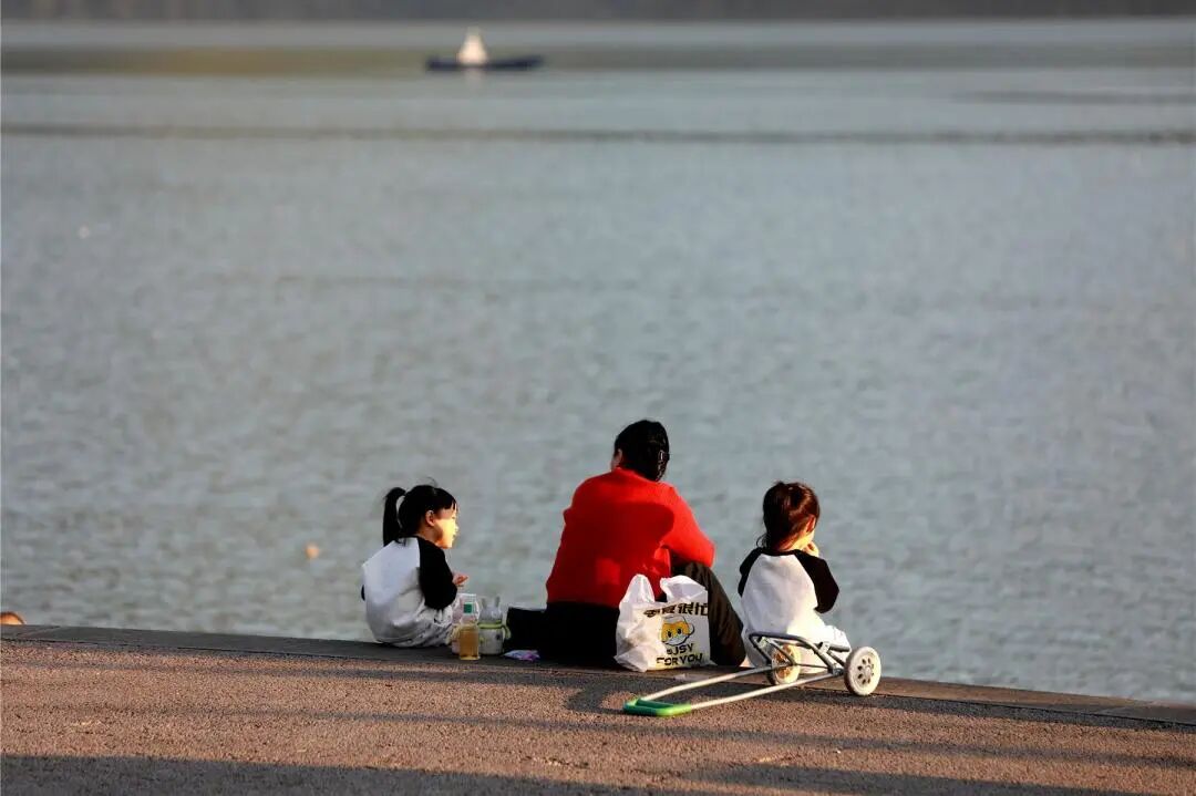 趁著晴好天氣,市民們紛紛來(lái)到江畔