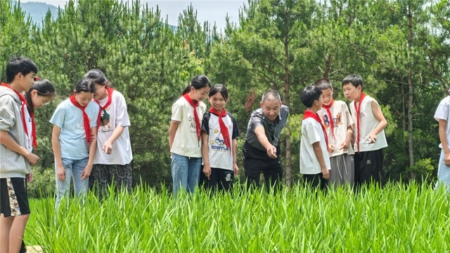 通訊員 李浩 2025-06-25 16:01:10近日,大陽(yáng)小學(xué)五年級(jí)的同學(xué)們?cè)诶蠋煹膸ьI(lǐng)下,來(lái)到學(xué)校勞動(dòng)實(shí)踐基地,開(kāi)展了一場(chǎng)別開(kāi)生面的“秧苗成長(zhǎng)觀察”活動(dòng)。