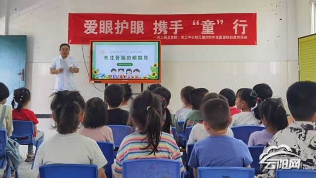 通訊員 袁兵 鐘正 2025-06-06 17:37:006月5日,雙土鎮(zhèn)中心幼兒園開展全國愛眼日宣傳活動,旨在讓孩子們從小養(yǎng)成愛護眼睛的好習(xí)慣。