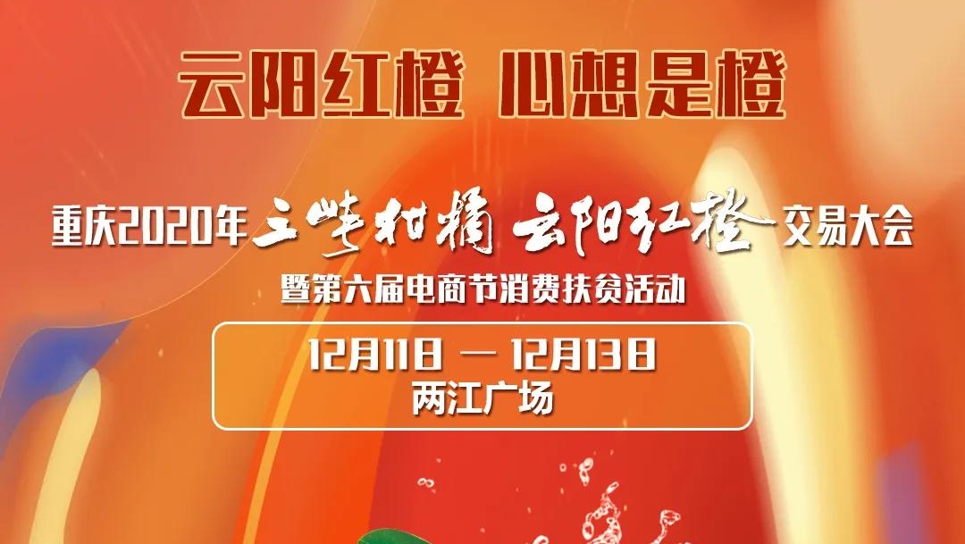 記者 譚啟云 張?jiān)娾?/span> 2020-12-11 17:39:07距離重慶市2020年三峽柑橘·云陽紅橙交易大會(huì)暨第六屆電商節(jié)消費(fèi)扶貧活動(dòng),只有3天,大家伙都準(zhǔn)備好了嗎?