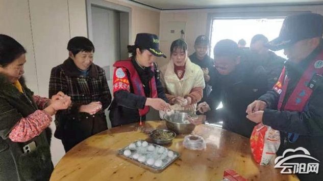 2月9日,云陽(yáng)海事處組織曲堆子停泊區(qū)值班留守船員齊聚“佳鴻919”輪一起包湯圓、貼春聯(lián)、慶新年。