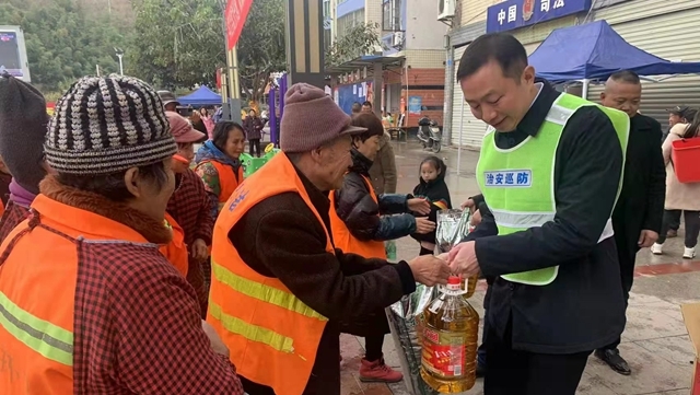 通訊員 童君 2022-01-30 17:05:001月29日,在新春佳節(jié)即將來(lái)臨之際,平安鎮(zhèn)組成慰問(wèn)組,看望慰問(wèn)了辛勤工作在一線的環(huán)衛(wèi)工人們,為他們帶去了米、油等春節(jié)慰問(wèn)品,并致以新春的祝福。