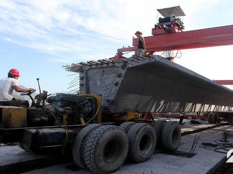 長河一號大橋施工現(xiàn)場,工人師傅正在緊張作業(yè),運梁設備車正在將預梁板這個龐然大物小心翼翼送進卡口中,整個工地一片熱火朝天建設景象。[詳細]