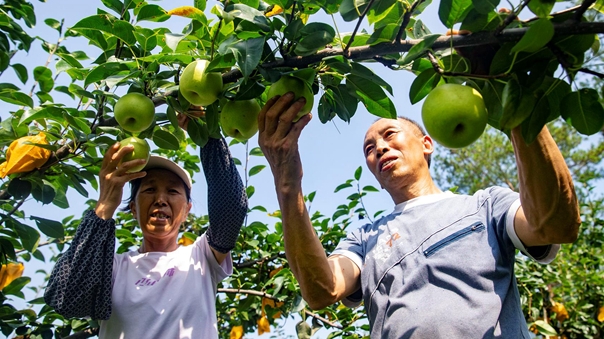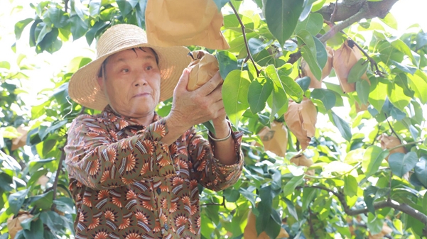 渠馬鎮(zhèn)渠富村的500畝秋彤桃園迎來豐收季,飽滿紅潤(rùn)的桃子掛滿枝頭,果香四溢。
