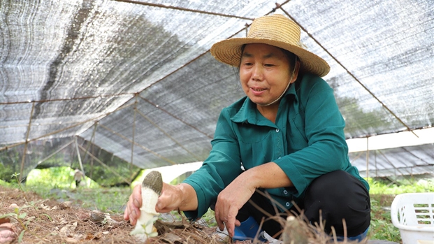 記者 王月園 2025-07-22 09:21:47連日來,木南村的三十多畝紅托竹蓀迎來采收旺季。大棚內(nèi)、林蔭下,一朵朵形似紗裙、色澤潔白的竹蓀破土而出,三四十名本村村民正忙著采摘、分揀。這片生機(jī)勃勃的景象,源于村集體年初的主動(dòng)謀劃。