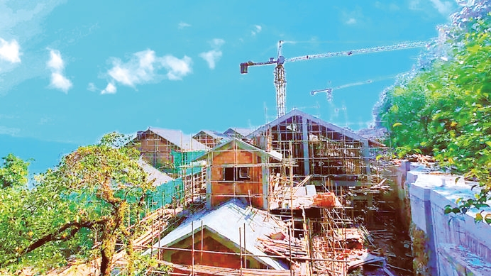 2023-11-03 22:05:00日前,記者來到云陽縣龍脊嶺公園云頂之上看到,磐石城保護(hù)利用項(xiàng)目一標(biāo)段(云街配套建筑)的6棟配套用房主體建筑基本完工,正在進(jìn)行內(nèi)外墻裝飾,整個(gè)項(xiàng)目有序推進(jìn)實(shí)施。