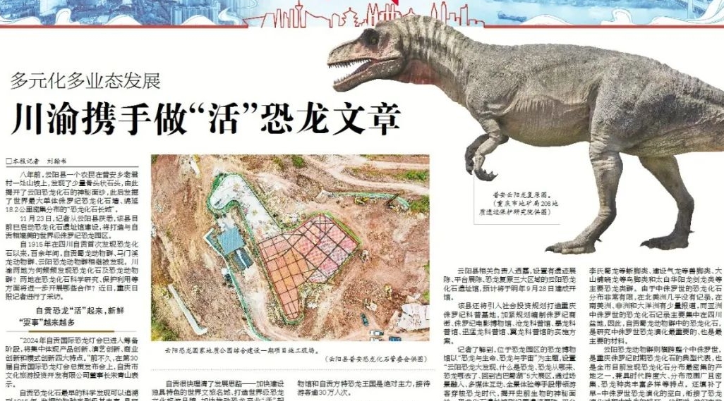 2023-12-10 21:10:37八年前,云陽縣一個(gè)農(nóng)民在普安鄉(xiāng)老君村一處山坡上,發(fā)現(xiàn)了少量骨頭狀石頭,由此揭開了云陽恐龍化石的神秘面紗,此后發(fā)掘了世界最大單體侏羅紀(jì)恐龍化石墻、綿延18.2公里密集分布的“恐龍化石長城”。