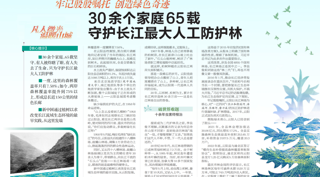 2024-01-02 10:19:07重慶日報(bào)深度報(bào)道《牢記殷殷囑托 創(chuàng)造綠色奇跡 30余個(gè)家庭65載守護(hù)長江最大人工防護(hù)林》