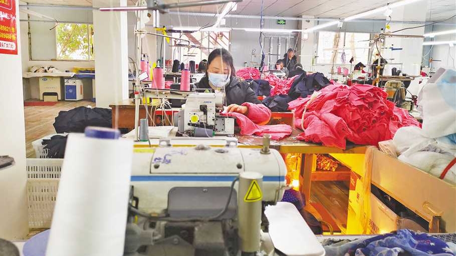 2023-02-16 09:26:13立春后,洞溪河畔的云陽平安鎮(zhèn)乍暖還寒。平安鎮(zhèn)平安社區(qū),云陽縣景程制衣有限公司的廠房里,卻是熱火朝天。